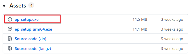 - 하단의 Releases 페이지에서 최신 설치 파일(ep_setup.exe)을 다운로드합니다.