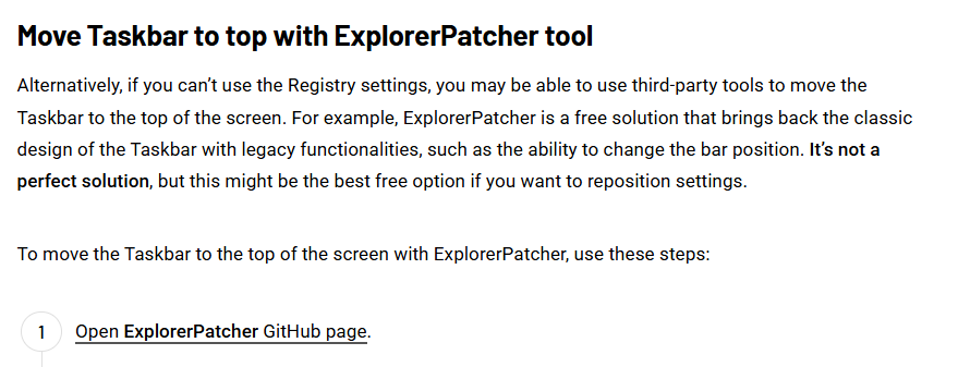 ExplorerPatcher는 작업표시줄을 이동할 수 있는 프로그램입니다.