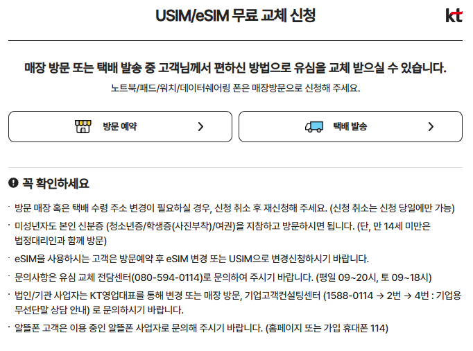 KT 유심 무상 교체를 하면서 방식 선택을 해야 합니다.